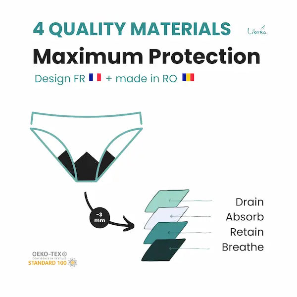 Ultra-innovative materials: guarantee efficiency . In the absorption standards certification process, Libréa passed 37 absorption tests, on 27 prototypes, using 20 different fabrics!